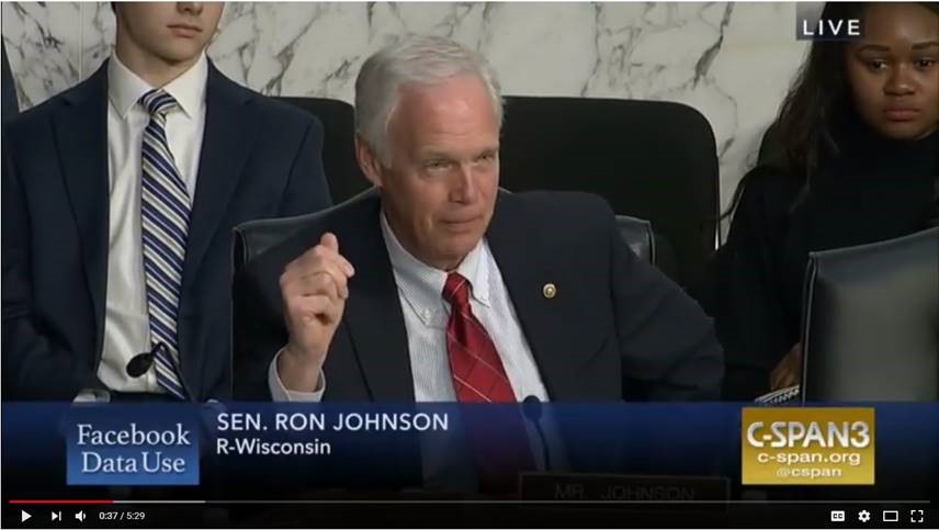 WASHINGTON –At a joint Senate Commerce Committee and Judiciary Committee hearing Tuesday on social media privacy and the use and abuse of data, U.S. Sen. Ron Johnson (R-Wis.), chairman of the Senate Homeland Security and Governmental Affairs Committee and a member of the Senate Commerce Committee, questioned Facebook CEO Mark Zuckerberg on third-party access to user data.
